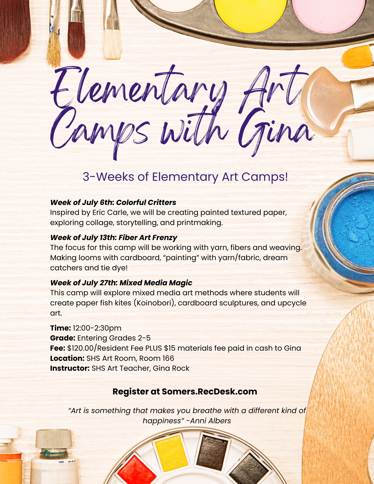 ART - Elementary Art Camps with Gina Rock!